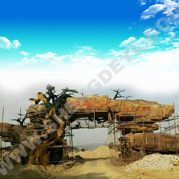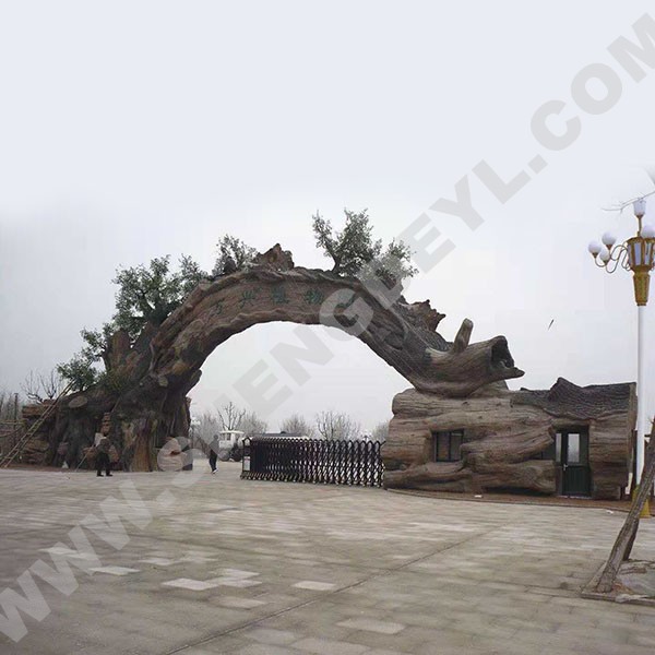 水泥仿真樹大門是仿真樹制作的較高境界,主要使用于公園景區(qū)、生態(tài)園入口、主題餐廳大門,農(nóng)家樂(lè)等主題景觀的營(yíng)造。水泥仿真樹大門同時(shí)借鑒了根雕工藝和雕塑工藝,仿真植物采用雕塑手法制作,仿真自然界中常見(jiàn)的植物造型,鑲嵌于大門景觀中,突出整體環(huán)境的格調(diào)。